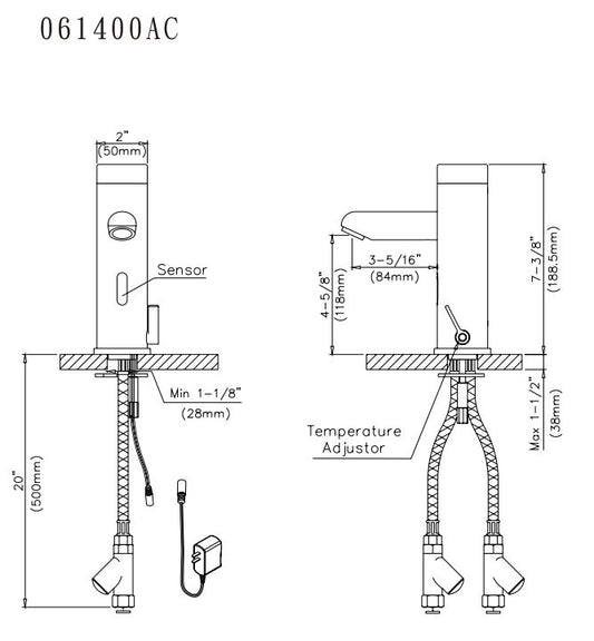 061400 AC Electronic Lavatory Faucet with Above Deck Mixer(PRE-ORDER)